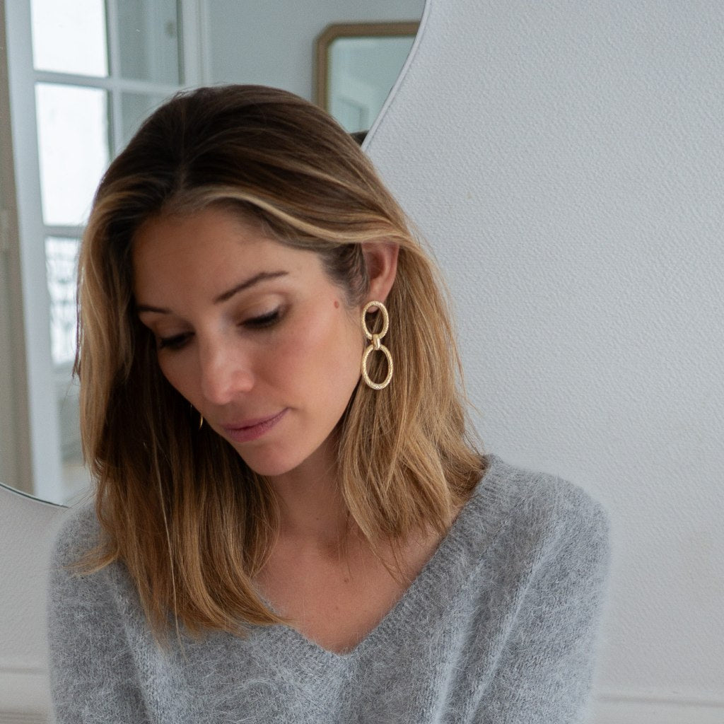 Dorées à l’or fin 24 carats, nos boucles d’oreilles femme conjuguent élégance et singularité.